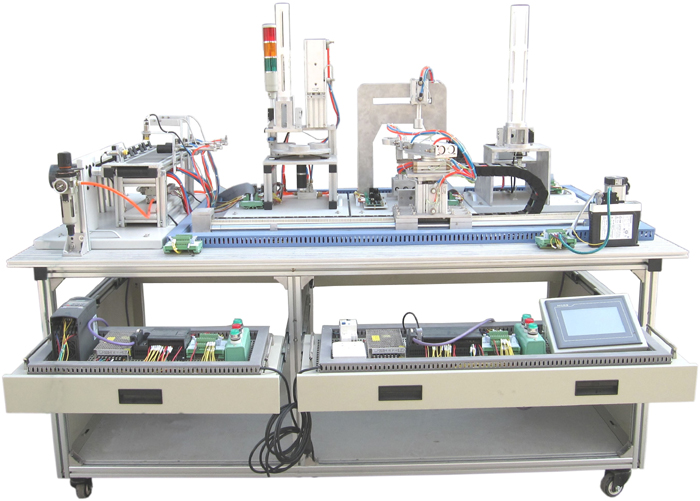 自动生产线装配与调试实训装置适用于《光电一体化》课程及《电气自动化》等实训课程的教学,以满足本专业培养目标的要求,提高学生光机电气一体化的安装与调试能力。自动生产线实训考核装置由由铝合金导轨式实训台、典型的机电一体化设备的机械部件、PLC模块、变频器模块、按钮模块、电源模块、模拟生产设备实训模块、接线端子排和各种传感器、计算机等组成。整体结构采用开放式和拆装式,实训装置用于机械部件组装,可根据现有的机械部件组装生产设备,也可添加机械部件组装其他生产设备,使整个装置能够灵活的按教学或竞赛要求组装具有生产功能的机电一体化设备。模块采用标准结构和抽屉式模块放置架,互换性强;按具有生产性功能和整合学习功能的原则确定模块内容,使教学或竞赛时可方便的选择需要的模块。设备需完全符合电工电子全国职业技能大赛所要求,同时还要求具有可拓展功能,可以组成更加大型的生产模拟系统,以配合各个用户学校不同层次,不同专业的教学及培训要求。