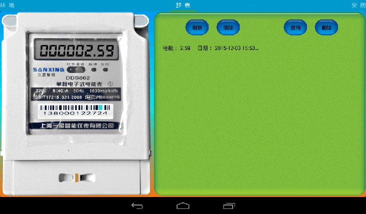 7、远程抄表系统:采用国家标准规程的三星电表,运用无线传感网技术,将整套的物联网综合应用系统的用电量实时的上报至智能网关,也可将其运用至智能家居实训系统中,实时监测家庭用电量。