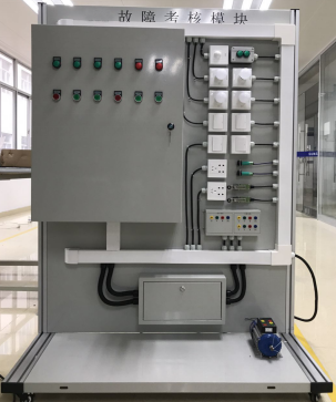 4、故障考核模块:故障考核模块采用铝合金型材作为主框架,安装板和底座使用铁板制作,4个脚安装有轮子,模块移动方便。模块具有完整的楼宇中的室内照明电路、窗帘和风扇电机控制电路,故障盒有不少于30个线路故障,可自由设置故障点的数量,故障设置切换方便。控制线路是全开放,在控制线路上进行检测,实训接近现实,方便实训任务教学和学生在实训中积累方法和经验,可进行室内照明电路、窗帘和风扇电机控制电路故障分析排除。