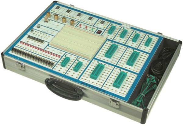 数电基础实验箱、数字电路实验箱,设计豪华气派,主机提供了多种信号源;锁紧插座;台湾产面包板;正面印刷字符连线,反面按装元器件,所有信号源、频率计等电路全部由CPLD芯片和双面板构成,所有器件均选用上等优质产品,使整机的品质得到提高。由于正面没有任何元件,从而能有效的降低和避免人为损坏的可能。本机特点:使用方便,耐用,实验项目灵活,可方便完成数字模拟各类实验。本学习机适用于高等院校及各类职业技术学校的电子技术类教学。