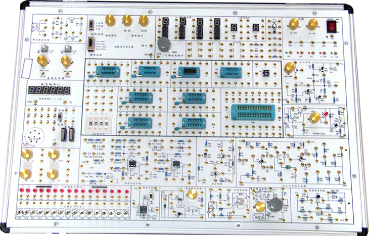 电子测量实验箱是根据最新的教学大纲中确定的教学实验要求为基础,汲取了众多专业教师的教学经验,并综合了众多同类产品的优点而设计的。它函盖了《模拟电子技术基础》及《数字电路基础》课程大部分的实验内容,既为初学者提供了验证性实验电路,又为课程设计提供了扩展平台。