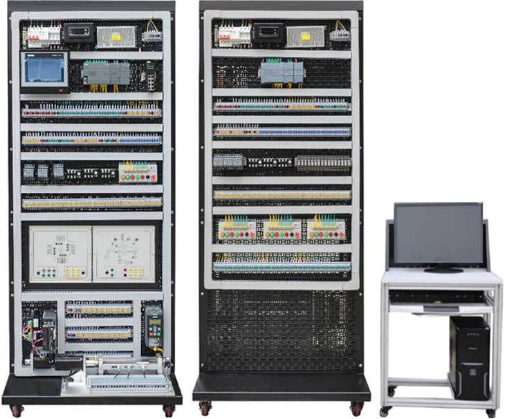 实训单元组成:网孔板实训区主要由电源单元、PLC单元、PLC学习箱单元、基础实训单元、小车运动单元、变频器单元等组成。