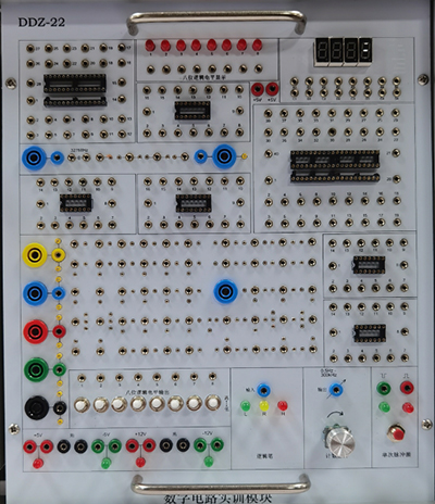 提供四位十进制译码显示器、八位逻辑电平开关、八位逻辑电平指示器、三态逻辑笔(红、黄、绿指示)、脉冲信号源(正、负输出单次脉冲和频率为0.5Hz~300kHz连续可调的计数脉冲源各一路),设有一些高可靠圆脚集成电路插座(14P、16P、28P、40P若干只)。配有相关实验元器件。