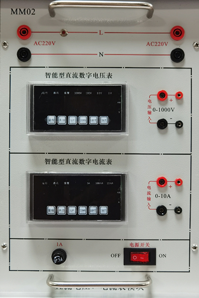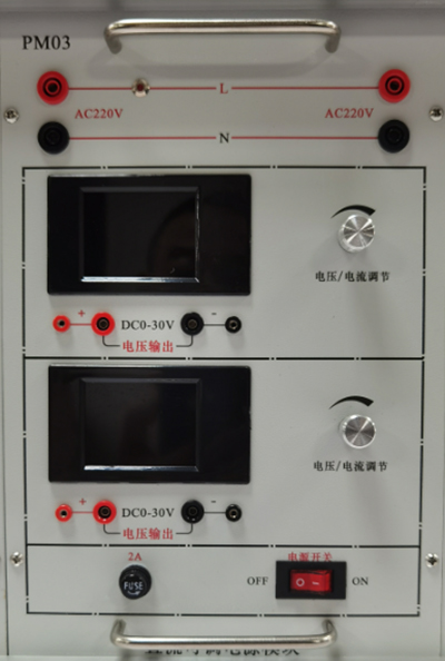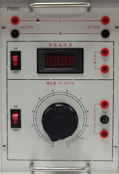 提供0~250V连续可调交流电源一路,数显电压变显示输出电压值,输出具有短路、过流保护等功能。提供交流电压表一只,测量范围0~500V,三位半显示,能够测量输入交流电压。