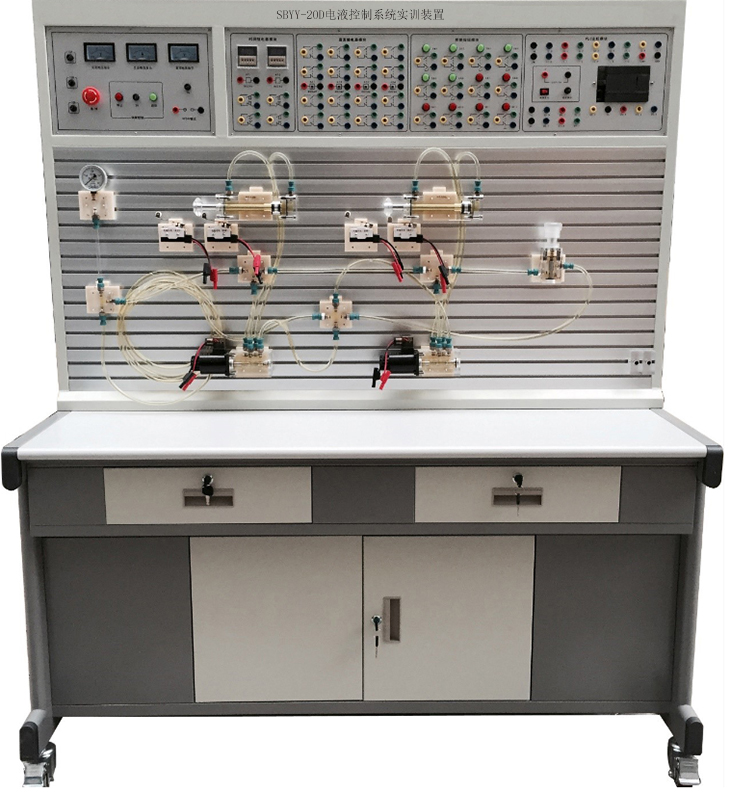电液控制系统实训装置,电液实训操作台,透明液压传动PLC控制实训装置是根据高等院校机电一体化教学大纲要求,在上海硕博公司专利产品透明液压传动演示系统的基础上广泛征求专家、教授与老师的意见,采用了开放型综合实验台结构,经不断创新改进研制而成的,是目前液电控制最理想的实验室设备、即可用于初学者的学习实验实训,也可用于职工的技能培训;可以加强学员深入掌握专业知识,提高解决实际问题能力、广泛用于学校、部队、军事、院校、机械、汽车、船舶、医疗、航空、钢铁、化工、电力、风电、石油、机械工程等各个领域。
