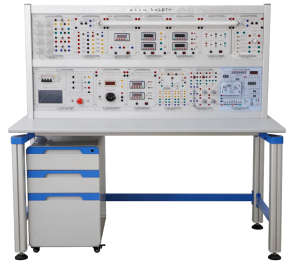 实验平台由实验桌、实验台架、存储柜、实验挂箱组件、配件等组成。