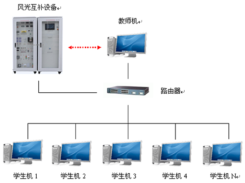 风光氢互补发电实训系统为科研创新理念与实验、实训型相结合的集风力发电,光伏发电、铅酸电池储能(磷酸铁锂电池储能)的多元化"风、光、氢(燃料电池)互补混合型新能源发电实训系统"