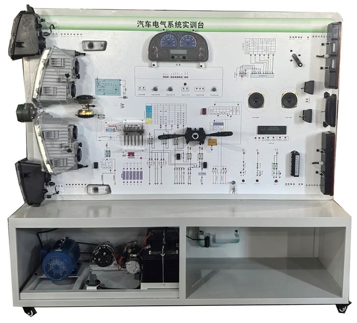 接通电源,操纵示教板上的各种电器开关、按钮、真实演示汽车仪表系统、灯光系统、雨刮系统、喇叭系统、发动机电器系统、起动系统和充电系统等汽车电器各系统的工作过程。