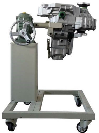 采用减速翻转机构,可使变速器旋转任意角度,并能任意位置锁止,便于学生从不同的角度进行拆卸和装配。