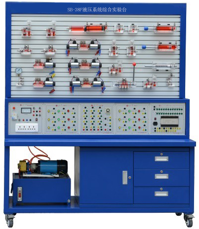 液压系统综合实验装备要求依据国家高等院校通用教材设计,涉及液压技术、传统继电器控制技术、时间继电器技术、PLC自控技术、传感器器应用技术等,适合高等院校液压教学实验专用。所有液压元件的外壳体要求采用进口高清晰透明可视化材料,内部均按照工业液压元件的实际结构设计。装备功能上要求能真实的反映单个工业液压元件的静态构造原理,由多个透明液压元件组成的任意回路,可清楚地观察流体在阀体中的流向和工业液压元件阀芯在回路中的动态原理,原理简单,回路清晰。