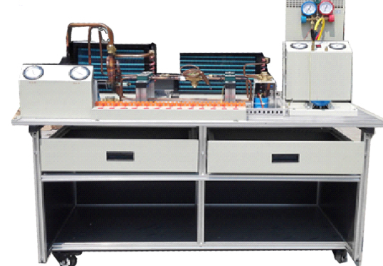 制冷与空调系统技能实训考核装置是专门为职业院校制冷类相关专业而研制的实训装置,根据制冷类行业中空调与冰箱维修技术的特点,针对空调和冰箱的电气控制以及制冷系统的安装与维修进行设计,强化了学生对空调冰箱系统管路的安装、电气接线、工况调试、故障诊断与维修等综合职业能力。装置融合了流体力学、热力学、传热学和电气控制等技术,集制冷空调系统安装、冰箱系统安装、制冷系统电接线、压力检漏、抽真空、充注制冷剂与运行调试于一体,包含了制冷系统维修的全部步骤,能满足实训教学、实际工程训练及职业技能竞赛的需要。