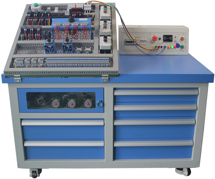 采用不锈钢材质,用于机床电气装调维修实训和考核。由一线品牌的电器元件(空气开关、熔断器、交流接触器、时间继电器、热继电器、按钮、指示灯、接线端子等)、通用安装板、角度调节机构等构成。角度调节机构根据人体工程学设计,安装板可在0-75°调节;