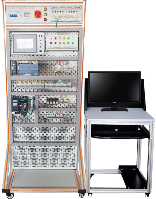 机电与电气控制PLC实训平台采用万能网孔板开放式设计,自由组合的思路, 配置完成各种低压电气控制所需要的多种低压电器,如单联开关、插座、感应开关、漏电开关等,以及电气控制所需要的多种低压电器,如漏电断路器、熔断器、电流互感器、交流接触器、时间继电器、热继电器、中间继电器、行程开关、按钮、信号灯、转换开关、电压表、电流表、功率表及电度表等,学员根据实训项目的要求,选取器件、组合成相应的实训电路,完成电力拖动线路安装、接线、调试及工艺整理,满足实训教学、鉴定培训及职业竞赛的需要。