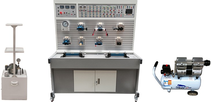 利用此套实训设备既可分别独立地进行气动控制、液压控制相应的基本回路及其应用实训,也可综合地进行相互配合的实训:如实现气-电控制,气-液控制,电-液控制,以及气-电-液综合控制等。
