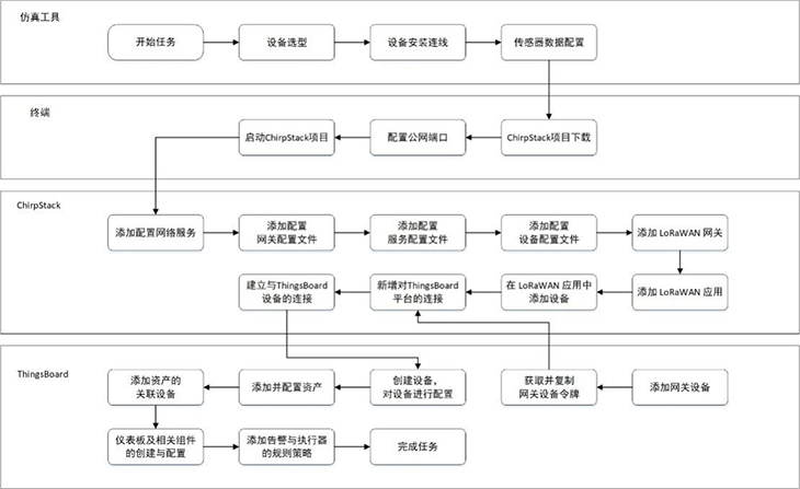 同时,平台引入ChirpStack、Node-RED、ThingsBoard、Home Assistant等丰富的开源物联网软件资源,融合工程仿真和行业设备,实现物联网的感知层设备、网关及网络传输层、平台及应用层的数据链路完整性,保证底层数据采集到前端应用效果的展现。
