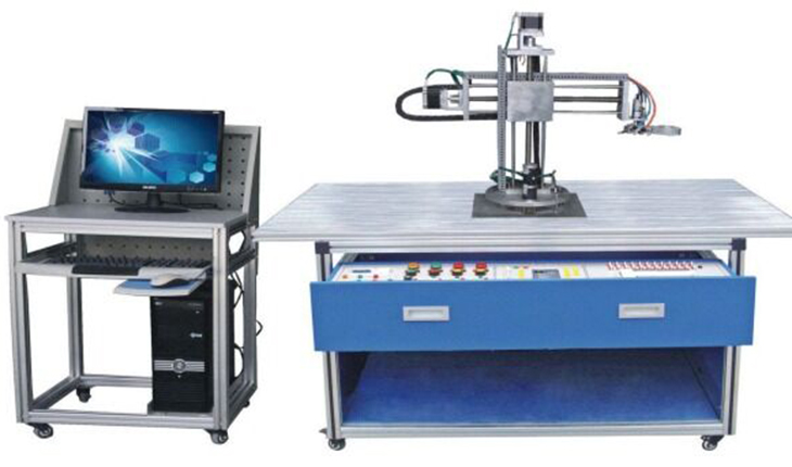 工业机械手实训装置为实际自动仓储系统的微缩,使用可编程控制器控制,在XYZ轴三个方向上准确地驱动步进电动机进行物品搬运、移动的成品,完善的执行机构可实现现代物流系统中全部动作过程。配套三菱FX3U-48MT PLC。工业机械手实训装置由铝合金导轨式实训台、机械手装置、控制系统等组成。实训装置为坐标式机械手,可完成机械手旋转、手臂垂直上下、手臂水平移动,手爪旋转四个自由度的位置精确控制。同时配置晶体管式PLC可编程控制器,用于对整个机械手进行复杂地位置控制。该实训装置的控制部分均采用标准式模块设计,可分为电源模块、PLC模块、系统控制模块。包含了机电一体化专业中所涉及的诸如步进电机驱动、机械传动、气动、可编程控制器、传感器、等多项技术,给学生提供了一个综合实训环境,使学生学过的诸多单科专业知识在这里得到全面认识、综合训练和相互提升。