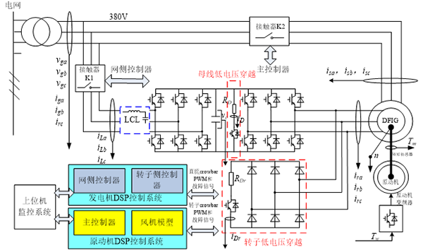 Ø实现风速和风力机模拟,机组并网控制,机组最大功率运行控制,机组恒速运行,机组限功率运行,机组低电压穿越,机组脱网控制等控制功能;