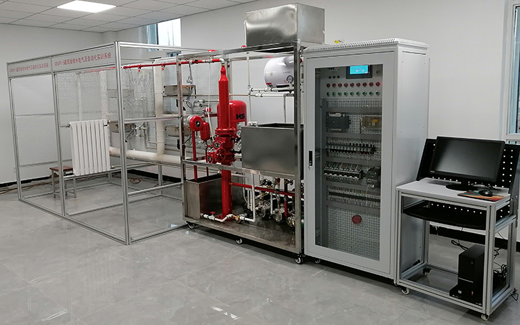 2、消防给水系统:主要有给水箱、喷淋泵、稳压罐、湿式报警阀、压力开关、水流指示器、消防给水管道、闭式喷淋头等组成。管路采用镀锌管进行设计,可进行镀锌管的切割、套丝、安装和通水试验操作,通过控制系统可实现喷淋灭火功能。