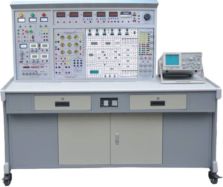高性能电工电子实训考核装置是我公司吸收国内外同类产品合理的实训方法,先进、科学的实训手段并加以消化、整合、提高而研制的新一代实训装置。实训内容根据教育部"振兴21世纪职业教育课程改革和教材建设规划"的要求,并按照职业教育的教学和实训要求而设定,涵盖"电路分析""电工基础""电工学""模拟电子技术""数字电子技术""电机控制""继电接触控制"等课程的实训大纲要求,其适合普通高校、职业院校、技校、职校等实验室新建、扩建、更新换代,为学校迅速开设实训课程提供了理想的实训设备。