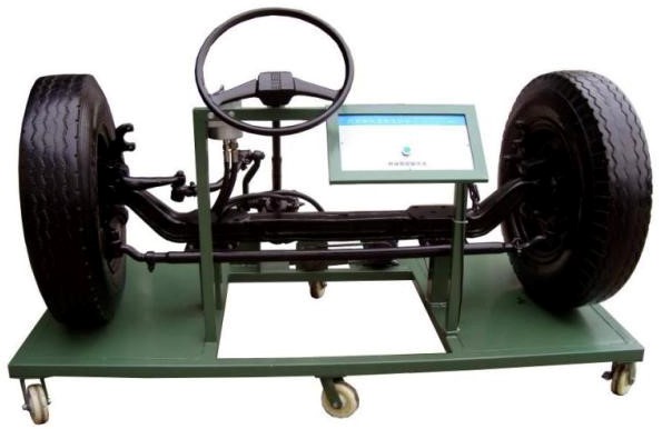 前桥转向系统实训台选用 翻新豪沃ZZ1167汽车动力转向系统原厂转向桥总成、转向器、转向机构、转向拉杆、摆臂等系统实物组成,把前桥总成、液压助力转向、悬架综合系统、转向机构等实物全部更直观的展露出来,可进行动力转向和非动力转向的对比,充分演示原车液压助力转向、悬架系统的结构组成与工作过程及的原理、作用及变化。能够满足对动力转向系统的结构组成,工作原理,实践操作等教学所需。