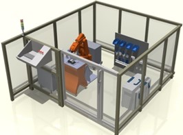 安全护栏:隔离护栏,高1000mm,框架采用2mm厚灰色栋梁铝合金型材,钢化玻璃10mm厚;工作站全部通透利于观察,玻璃中间没有隔断;并安装一个侧开门;门上安装安全检测元件,机器人自动运行必须在门关闭状态下进行;系统工作站安装有3个急停按钮,分别位于操作控制台、模型安装台、隔离护栏上,以备紧急情况使用。