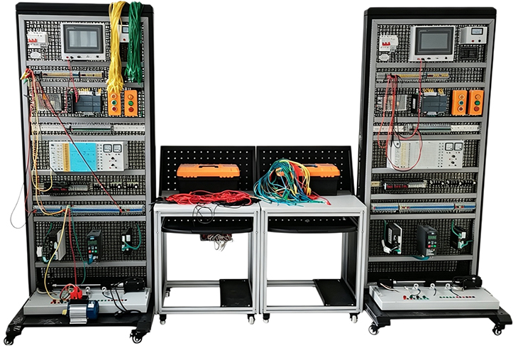 工作台实训内容丰富,涉及知识点广泛,其中包含了:西门子S7-1500系列PLC的实训;触摸屏的实训;触摸屏与PLC通讯的实训;该工作台可选用不同的PLC学习箱进行不同的实验项目,如舞台灯光实训;十字路口交通灯控制实训;四节传送带控制的实训;邮件分拣实训;四层电梯实训;步进电机实训;水塔水位实训;自动配料实训;运料小车实训;伺服电机的控制实训;变频器的控制实训;小车运动控制实训;编码器控制实训;PLC与变频器PROFINET总线通信等;以及继电器-交流接触器系统的电动机正反转,星-三角,两台电机的顺序控制等实训。气动系统控制实训等项目,实训内容从易到难,便于学生更轻松高效的学习PLC知识。