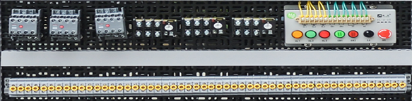 组成:继电器、交流接触器、热继电器、按钮指示灯、导轨、线槽、双层端子;